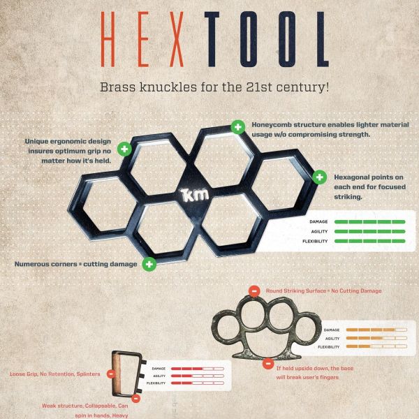 NOTE: Hex Tools was designed to perform numerous tasks including loosening bolts, connecting bungee cables, organizing keys, and much more!